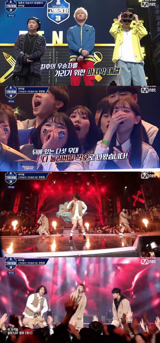12일 오후 방송된 엠넷 예능 프로그램 '고등래퍼 3'에서는 우승자를 가리기 위한 파이널 무대를 펼치는 이진우, 최진호, 이영지, 양승호, 권영훈, 강민수의 모습이 그려졌다.