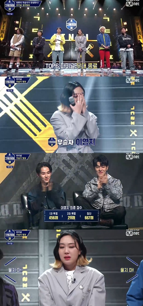 '고등래퍼 3'에서 이영지가 쟁쟁한 후보들을 제치고 최종 우승을 차지했다.