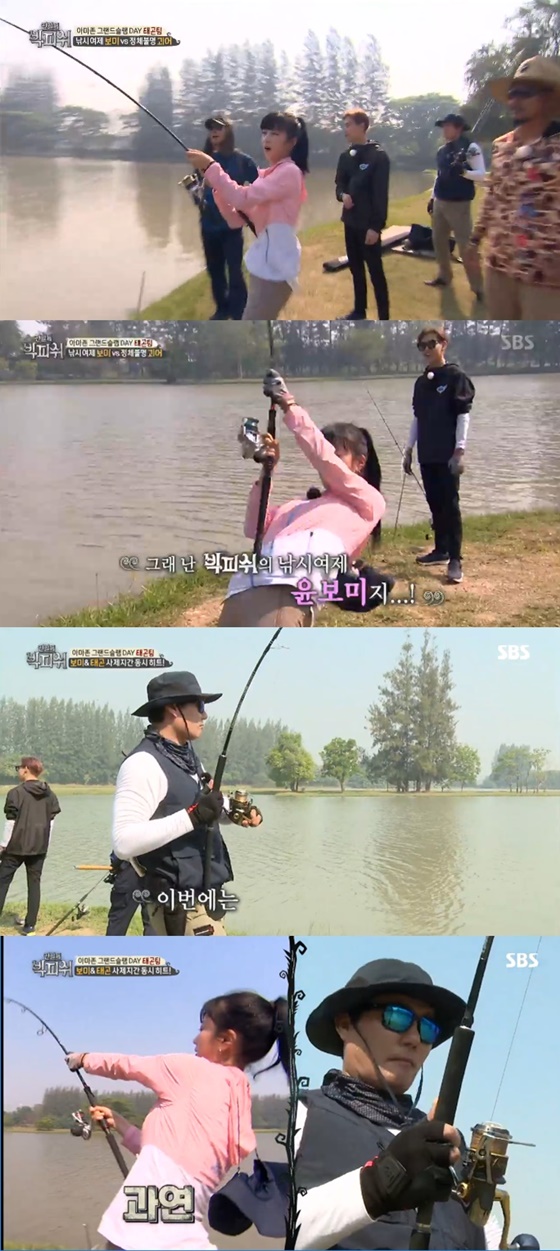이어 윤보미는 낚시에 완벽히 적응한 모습을 보여줬다. 윤보미는 준비 동작부터 마무리까지 완벽한 모습으로 1m 17cm의 아마존 레드테일 캣 피쉬를 낚았다. 아마존 레드테일 캣 피쉬는 매혹적인 붉은 색 꼬리를 가져 눈길을 끌었다.