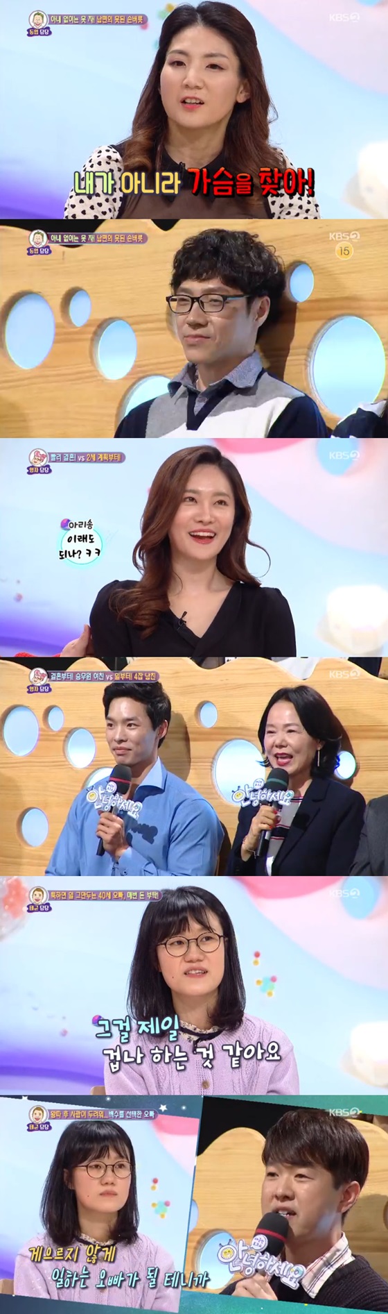 15일 오후 방송된 KBS 2TV '안녕하세요'에서는 부부, 연인,남매의 고민 사연이 등장했다.