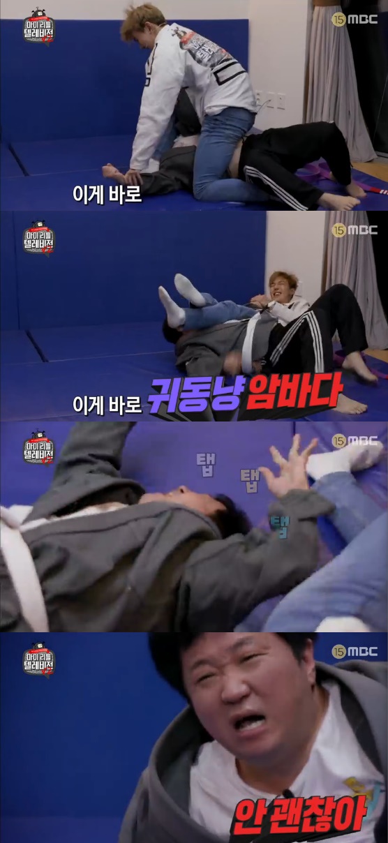 지난 19일 방송된 MBC 예능 프로그램 '마이 리틀 텔레비전 V2'에서 정형돈이 김동현과 조남진에게 주짓수 주특기 기술을 전수 받았다.