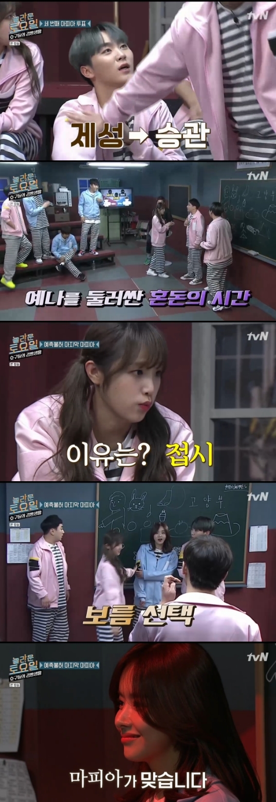 20일 오후 방송된 tvN 예능 프로그램 '호구들의 감빵생활'에서 한보름이 마지막까지 남은 마피아였고 모범수들은 세 명의 마피아를 모두 찾아냈다.