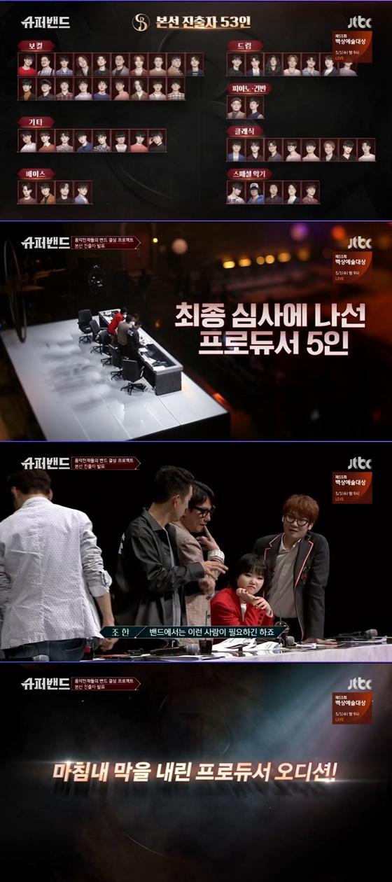 26일 오후 방송된 JTBC 음악 예능프로그램 '슈퍼밴드'에서는 치열한 경쟁을 거쳐 예선을 통과한 53인의 본선 진출자가 공개됐다.
