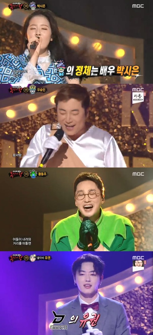 배우 박시은, 올라이즈 밴드 우승민, 배우 황동주, 블락비 유권이 '복면가왕'을 찾아 가창력을 뽐냈다.