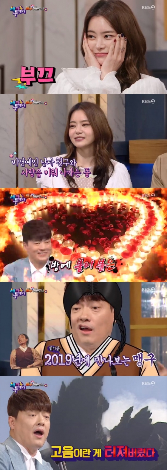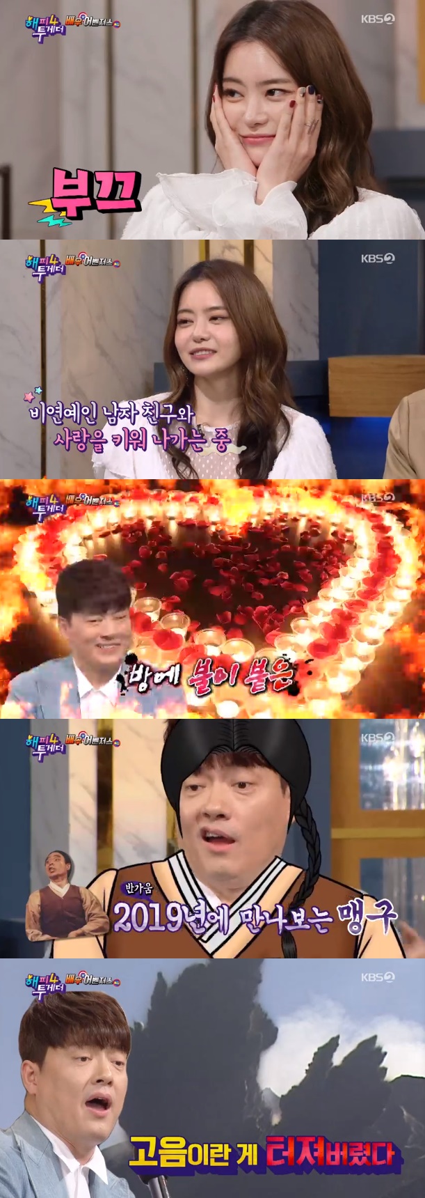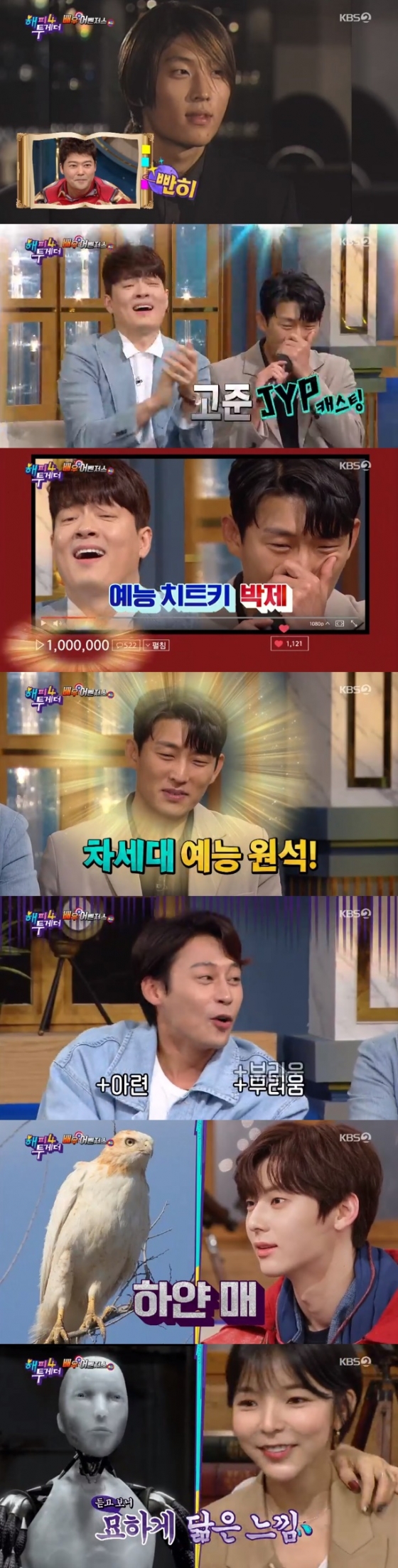 2일 오후 방송된 KBS 2TV 예능프로그램 '해피투게더4'(이하 '해투4')에서는 고준, 김형묵, 정은우, 서유리, 박진주와 스페셜 MC 뉴이스트 황민현이 출연해 '배우 어벤져스' 특집을 꾸몄다.