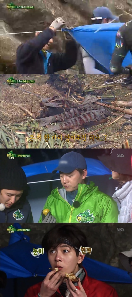 그렇게 잡은 물고기를 바위 위에 널어놓고 , 행복한 취침시간을 가졌다. 다음날 멤버들은 새벽에 잡은 물고기로 물고기 파티를 벌이며 행복한 모습을 보였다.