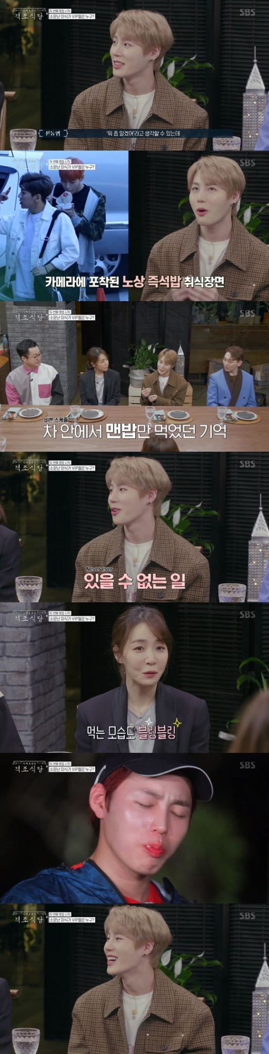 이날 MC 신동엽은 하성운에게 "잘 먹는다고 들었다. 맨밥 먹는 모습이 찍혔다"라고 말하며 즉석밥 취식 사진을 공개했다.