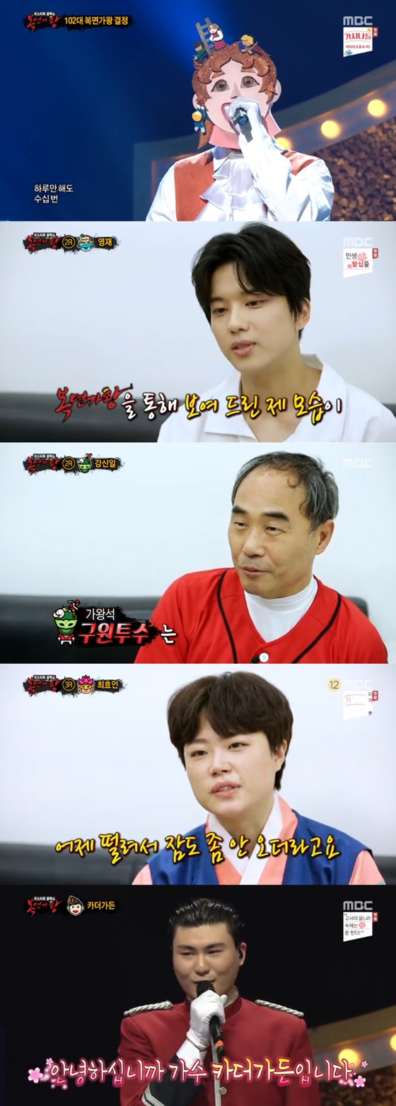 '복면가왕'에서 걸리버가 5연승에 성공했다. 또 그에게 도전한 복면가수는 B.A.P 출신 영재, 배우 강신일, 가수 최효인, 카더가든임이 드러났다.