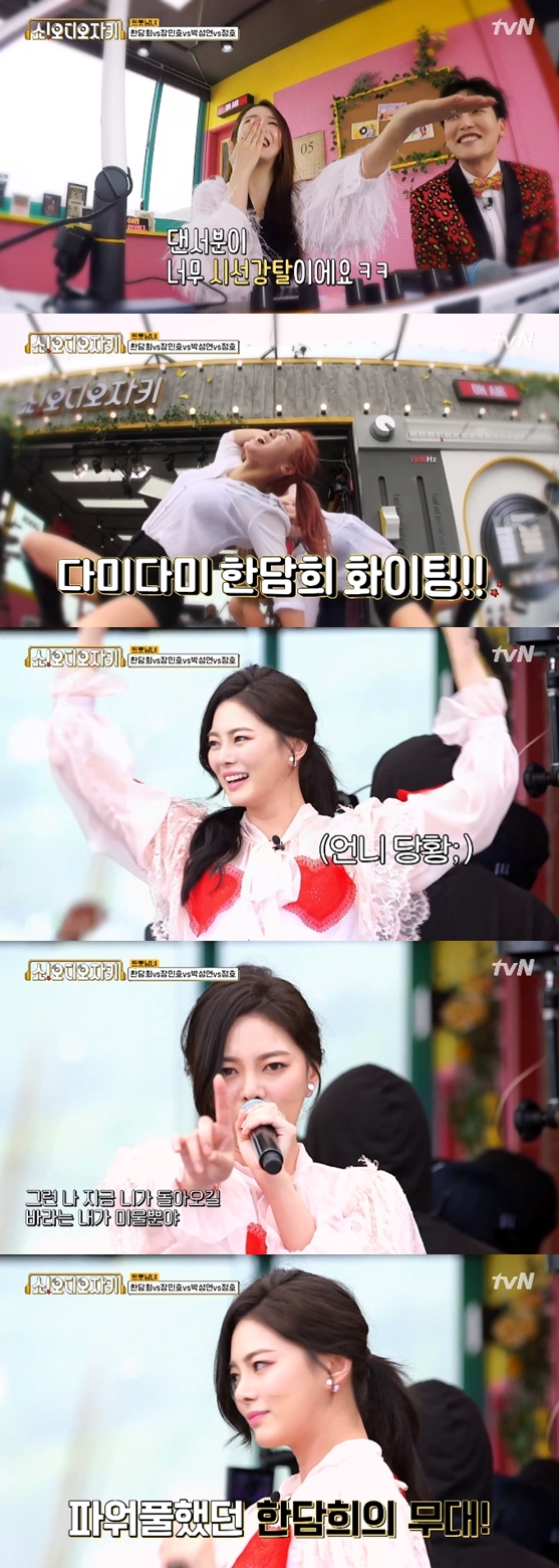 19일 오후 방송된 tvN 예능 프로그램 '쇼! 오디오자키'에서 박명수의 '트롯남녀' 코너에 출연한 한담희는 개인기와 가창력을 선보였다.