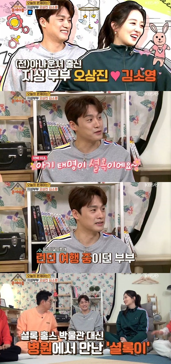 이날 게스트를 가리키는 키워드는 "셜록이 엄마, 아빠"였다. 오상진은 "애기 태명이 셜록이에요"라고 전했다.