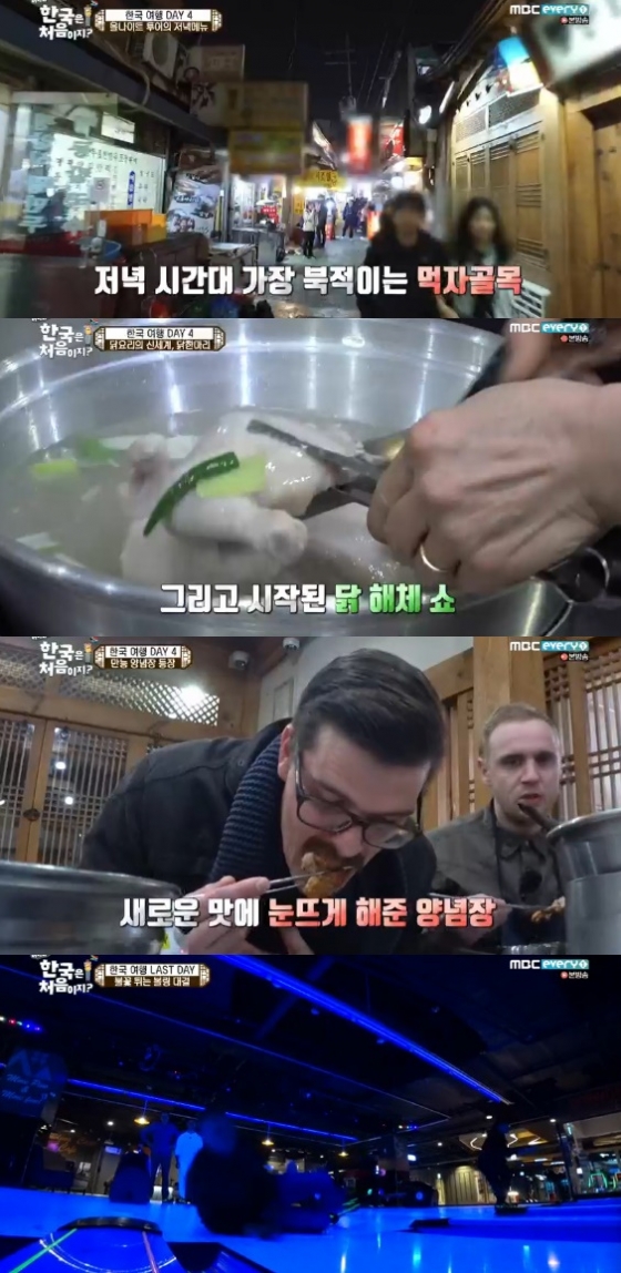 이날 저스틴은 친구들을 동대문 먹자골목으로 안내했다. 늦은 시간에도 손님들로 꽉 차 있는 식당은 친구들의 눈을 휘둥그레하게 만들었다.