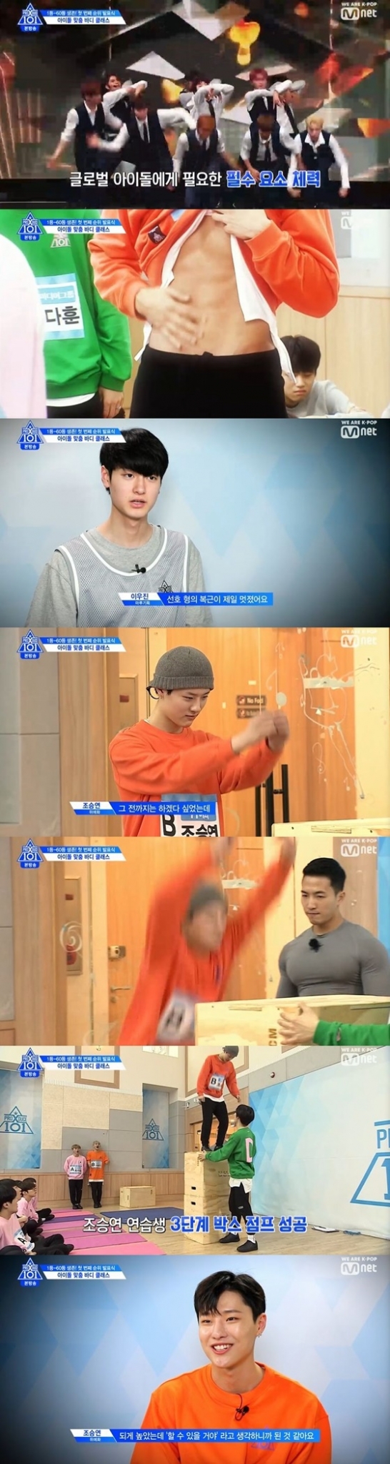 연습생들은 윤태식 트레이너의 지휘 아래 글로벌 아이돌 필수 요소인 체력에 대한 검진을 시작했다. 본격적 검사 전 김요한, 이원준, 박선호는 식스팩을 공개해 다른 연습생들을 놀라게 했다.