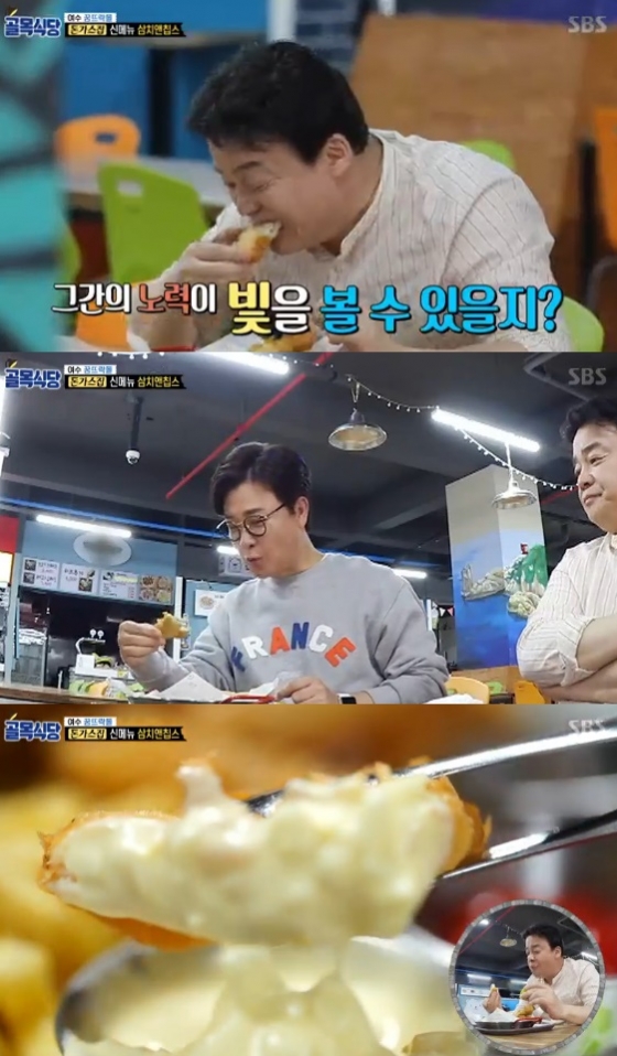 '백종원의 골목식당'에서 백종원과 김성주가 돈까스집의 삼치앤칩스를 맛보고 호평했다.