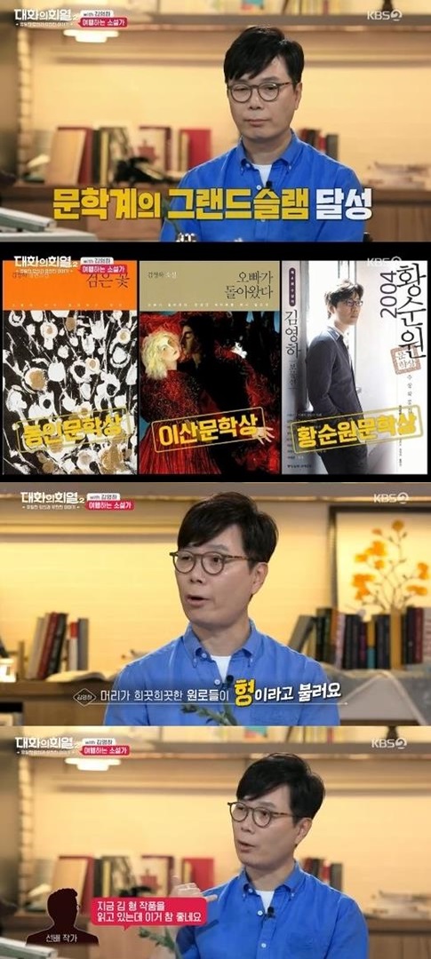 이날 절친 김중혁 작가는 김영하에 대해 "2004년에 문학계 그랜드슬램을 달성한 분이다. 한 해에 세 개의 상을 동시에 받는건 이례적인 일이다"라고 설명했다.