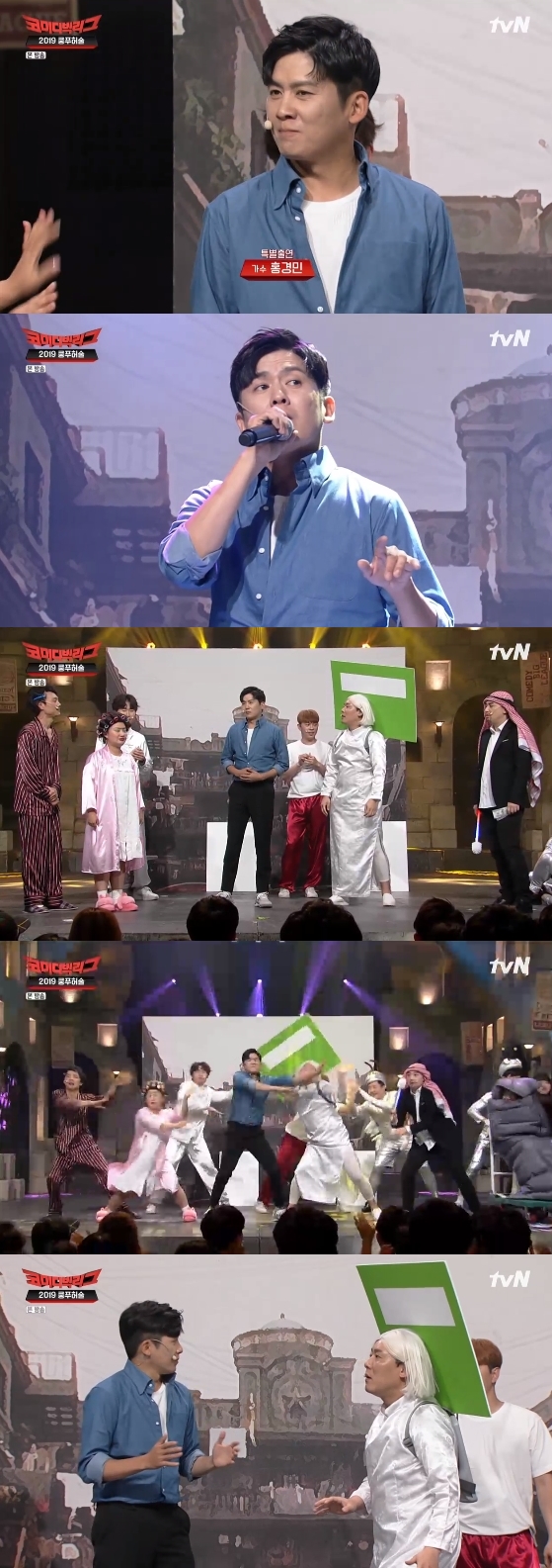 '코미디 빅리그'에서 '2019 쿵푸허슬'에 가수 홍경민이 특별출연했다.
