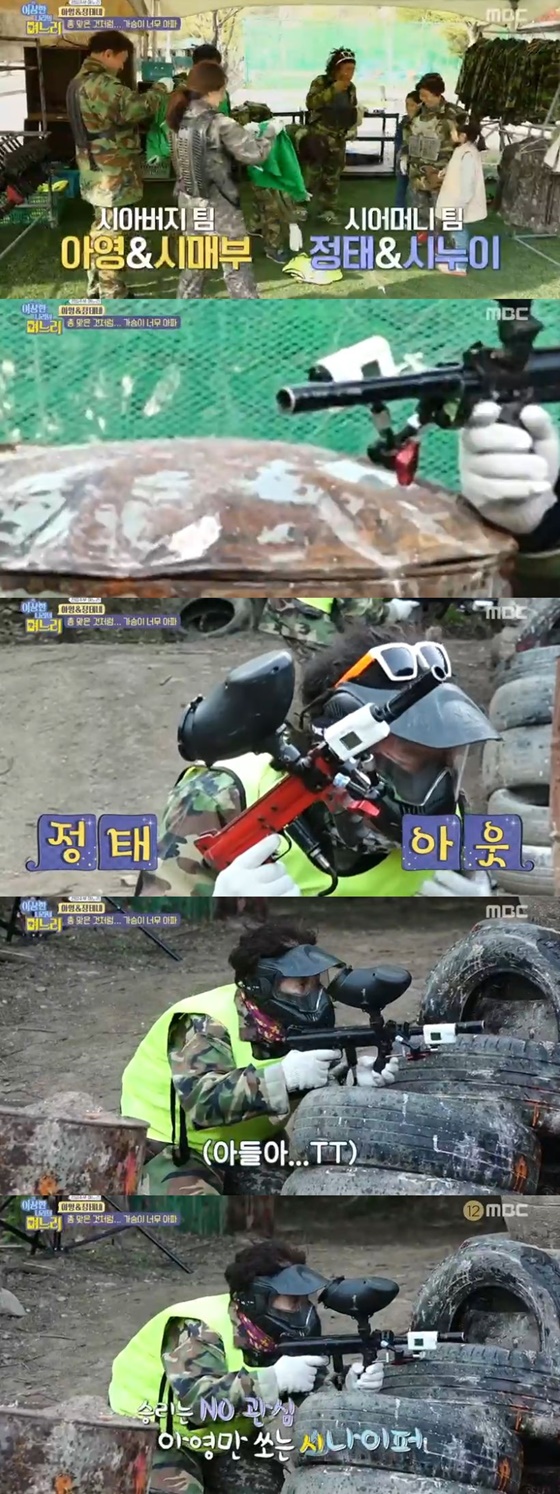 20일 오후 방송된 MBC 시사·교양 프로그램 '이상한 나라의 며느리'에서는 시댁 식구들과 서바이벌 게임을 하는 오정태와 백아영의 모습이 담겼다.