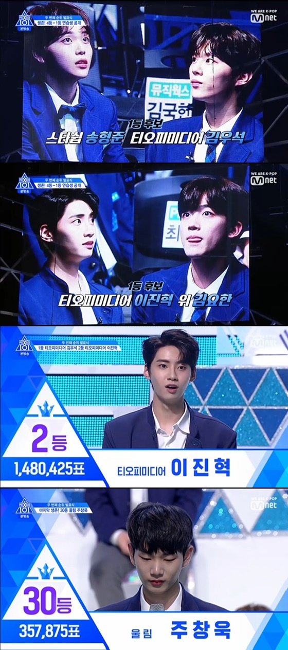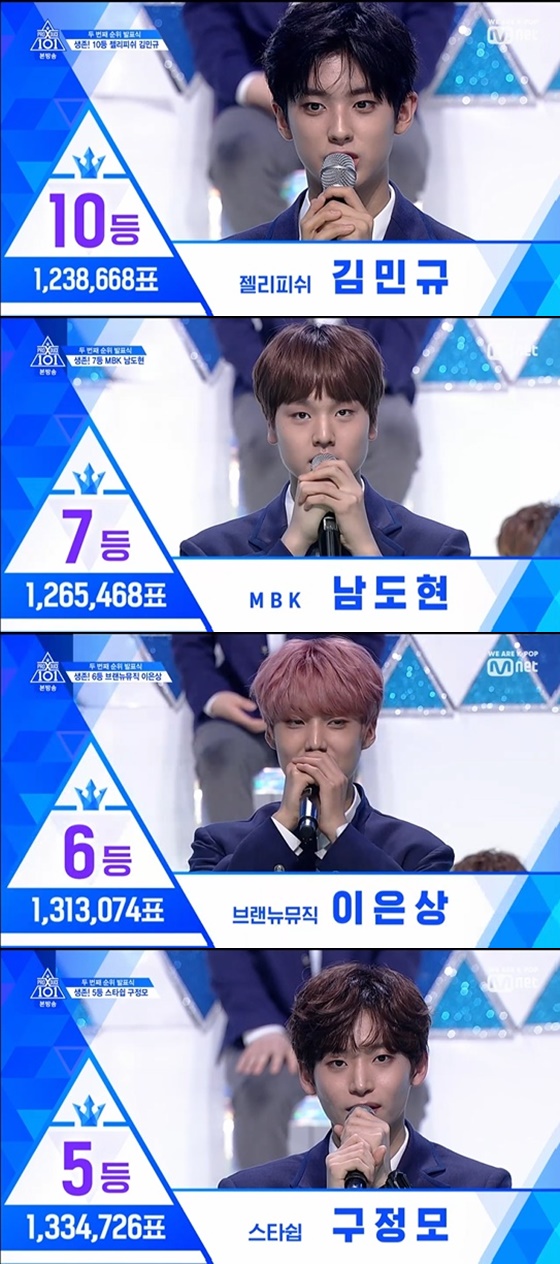 이날 방송에서 29위부터 공개됐다. 29위는 최수환, 28위 박선호, 27위 토니, 26위 이협, 25위 김현빈, 24위 김시훈, 23위 강민희, 22위 김국헌, 21위 이세진 연습생이었다.