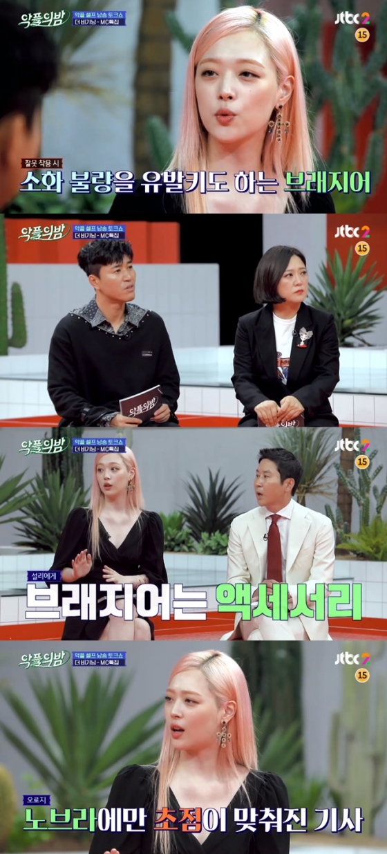 '악플의 밤'은 스타들이 자신을 따라다니는 악플에 대해 허심탄회하게 이야기하며 올바른 댓글 매너 및 문화에 대해서도 한 번쯤 생각해 보는 프로그램. 이날 설리는 자신을 둘러싼 마약 루머, 상의 속옷 미착용 논란, 악플로 대인기피증을 앓았던 사연 등을 털어놨다.