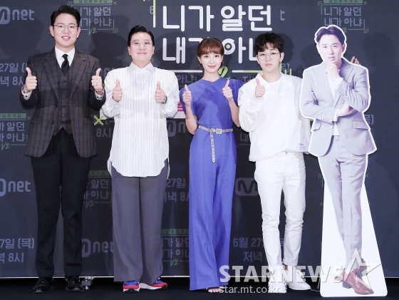 26일 오후 3시 서울 마포구 상암동 CJ ENM 사옥에서 엠넷 예능 프로그램 '니가 알던 내가 아냐 V2' 제작발표회가 진행됐다. 제작발표회에는 권영찬 CP, 장성규, 이상민, 딘딘, 정혜성이 참석해 새 프로그램에 대해 소개했다.