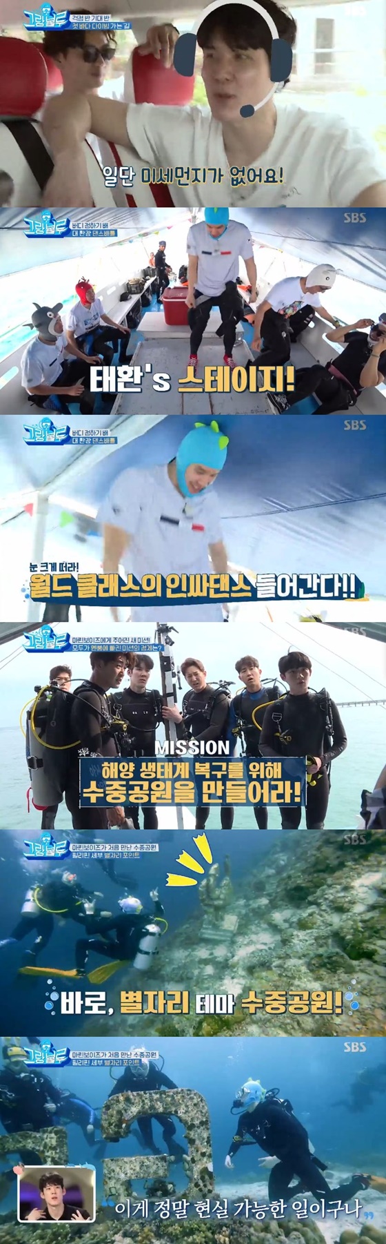 이날 멤버들에게 주어진 미션은 수중 공원을 만드는 것이었다. 바다 사막화로 인해 해양 생물들은 보금자리를 잃었는데, 이러한 해양 생태계를 살리기 위해 수중 공원을 만드는 것이다.