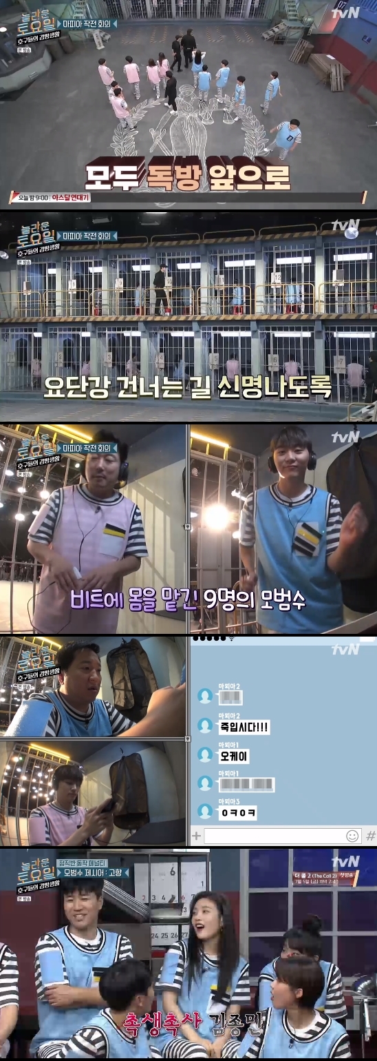 '마피아 데스노트'를 활용해 마피아들은 작전 회의를 거쳐 모범수 한 명을 탈락시킬 수 있는 새로운 규칙이 이날 방송부터 적용됐다. 이미 마피아 정체가 공개된 정형돈과 JB 그리고 아직 정체를 숨기고 있는 한 명의 마피아는 활발히 문자를 주고받으며 처리할 모범수를 정했다.