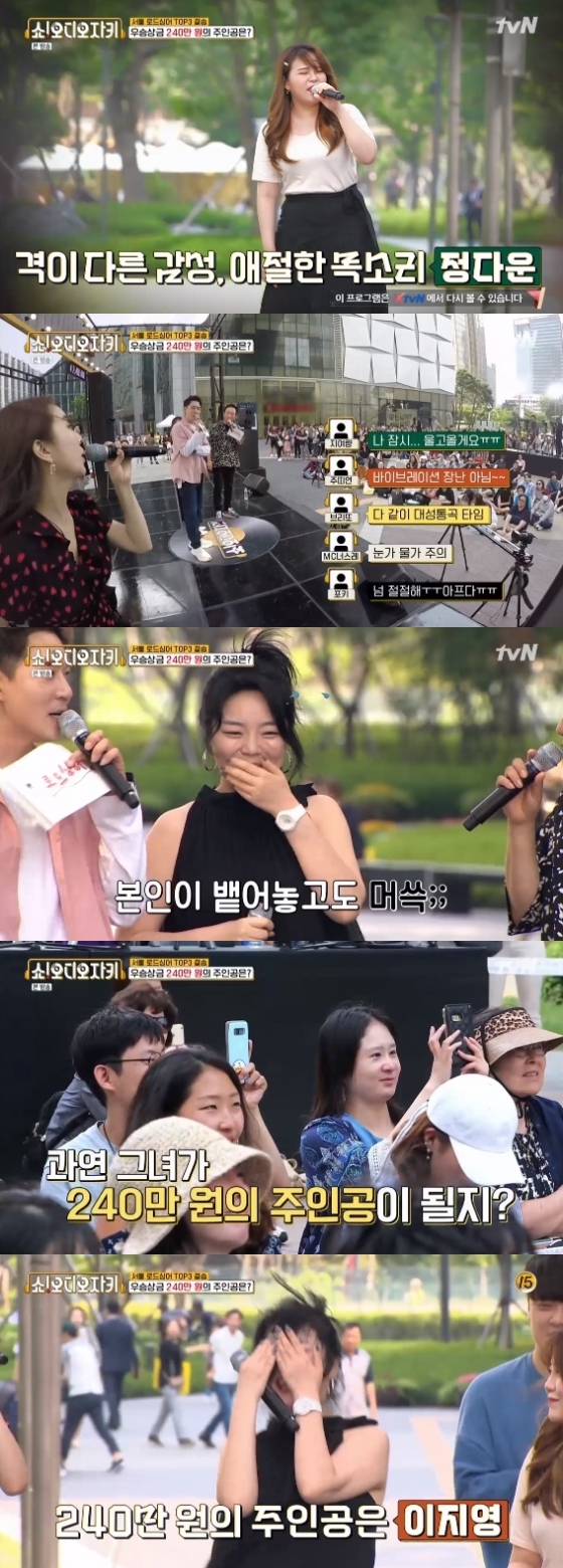 30일 오후 방송된 tvN 예능 프로그램 '쇼! 오디오자키'에서 박명수와 붐이 '서울 로드싱어' 코너를 진행했고 240만 원의 상금을 차지할 우승자를 가렸다.