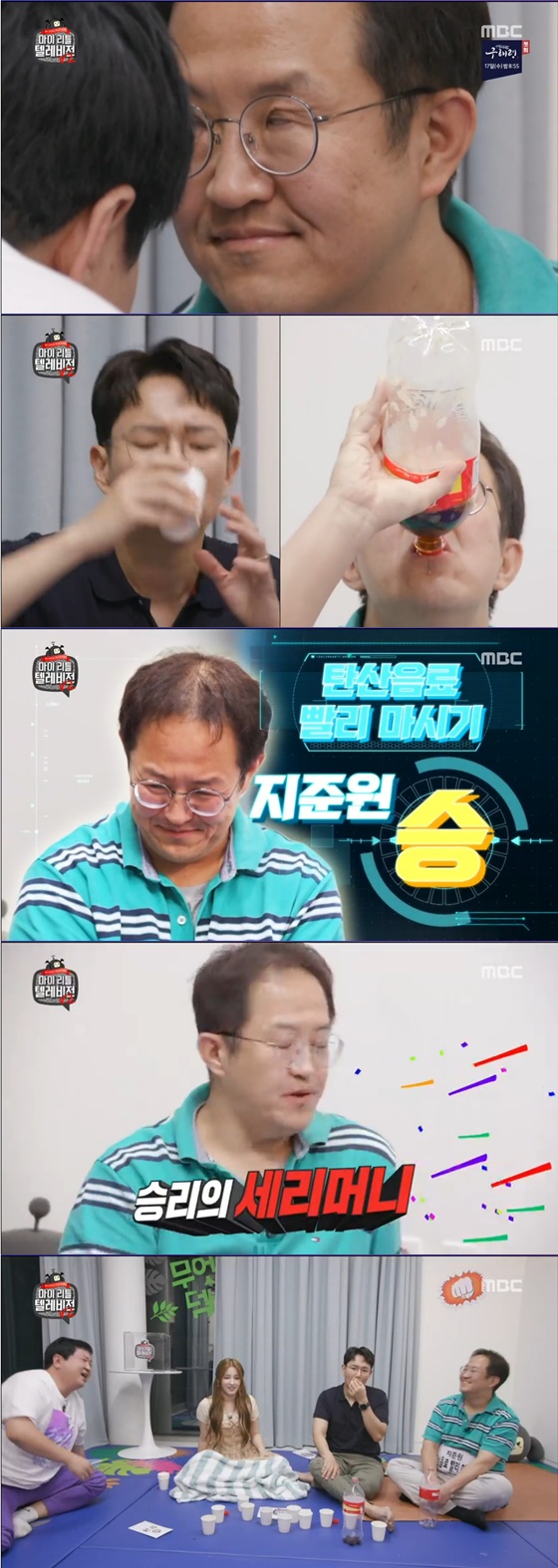 지준원 도전자는 탄산음료를 마시는 중간중간 트림을 선사했는데, 이 모습을 본 정형돈은 "너무 웃기다"며 포복 절도했다.