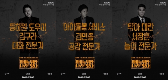 6일 오후 첫 방송되는 KBS 2TV 새 예능프로그램 '아이를 위한 나라는 있다'(이하 '아이나라'는 피치 못할 사정으로 아이의 등, 하원을 책임질 수 없는 부모를 대신해 김구라, 김민종, 서장훈 세 남자가 등하원 도우미로 변신해 '돌봄서비스'를 제공하는 프로그램이다.