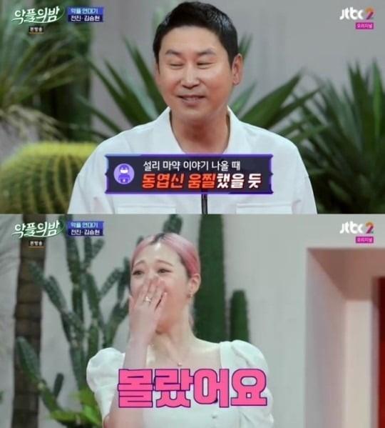 이날 신동엽은 "첫 방송 이후 '설리 마약 이야기 나올 때 동엽신 움찔했을 듯’이라는 악플이 눈에 띄었다"고 말했다.