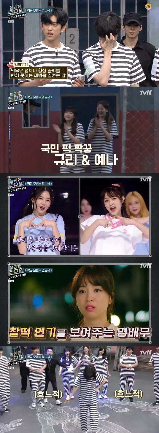 6일 오후 방송된 tvN 예능 프로그램 '놀라운 토요일 - 호구들의 감빵생활'에서 그룹 갓세븐 진영, 그룹 프로미스나인 장규리 그리고 배우 박하선이 특별 게스트로 출연한 소감을 밝혔다.