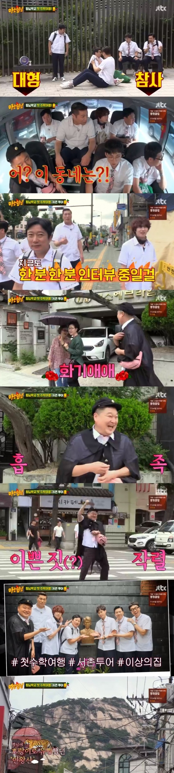6일 오후 방송된 JTBC 예능프로그램 '아는형님'에서는 형님들이 개교 4년 만에 처음으로 수학여행을 떠났다. 이날 형님들의 스케줄은 서촌 투어, 중식, 진관사, 숙소 이동으로 짜여졌다.