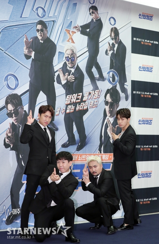 11일 오후 서울시 마포구 상암동 스탠포드 호텔 그랜드볼룸에서 XtvN 새 예능프로그램 '씬의 퀴즈' 제작발표회가 열렸다. 행사에는 장동민, 유병재, 허경환, 양세찬과 이준석 PD가 참석했다.