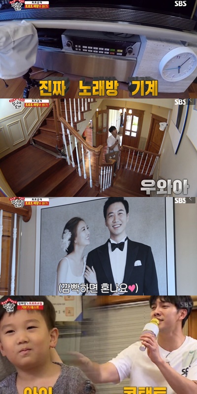 거실 한가운데에는 대형 결혼 사진이 걸려있었다. 멤버들이 집을 구경하는 중 장윤정과 도경완 아나운서의 아들 연우 군이 깜짝 등장했다.