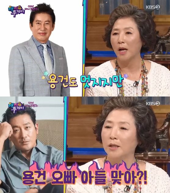 또한 고두심은 "(김)용건 오빠와 하정우 씨는 굉장히 다르게 생겼다"며 "용건 오빠도 굉장히 잘 생기고 멋쟁이지만, 하정우를 딱 보면 용건 오빠 아들 맞나 생각이 든다. 너무 야성적이고 남자 냄새가 난다"고 칭찬했다.