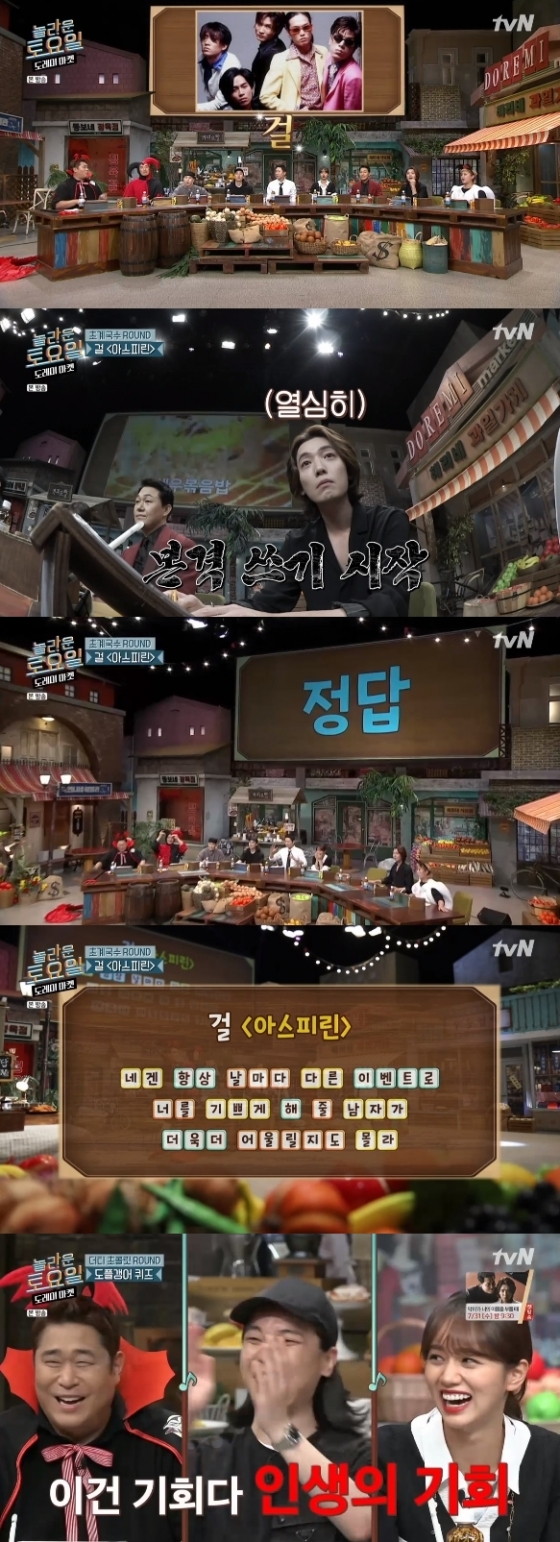 27일 오후 방송된 tvN 예능 프로그램 '놀라운 토요일 - 도레미 마켓'에서 1라운드에서 1차 시도만에 정답을 맞혔다.