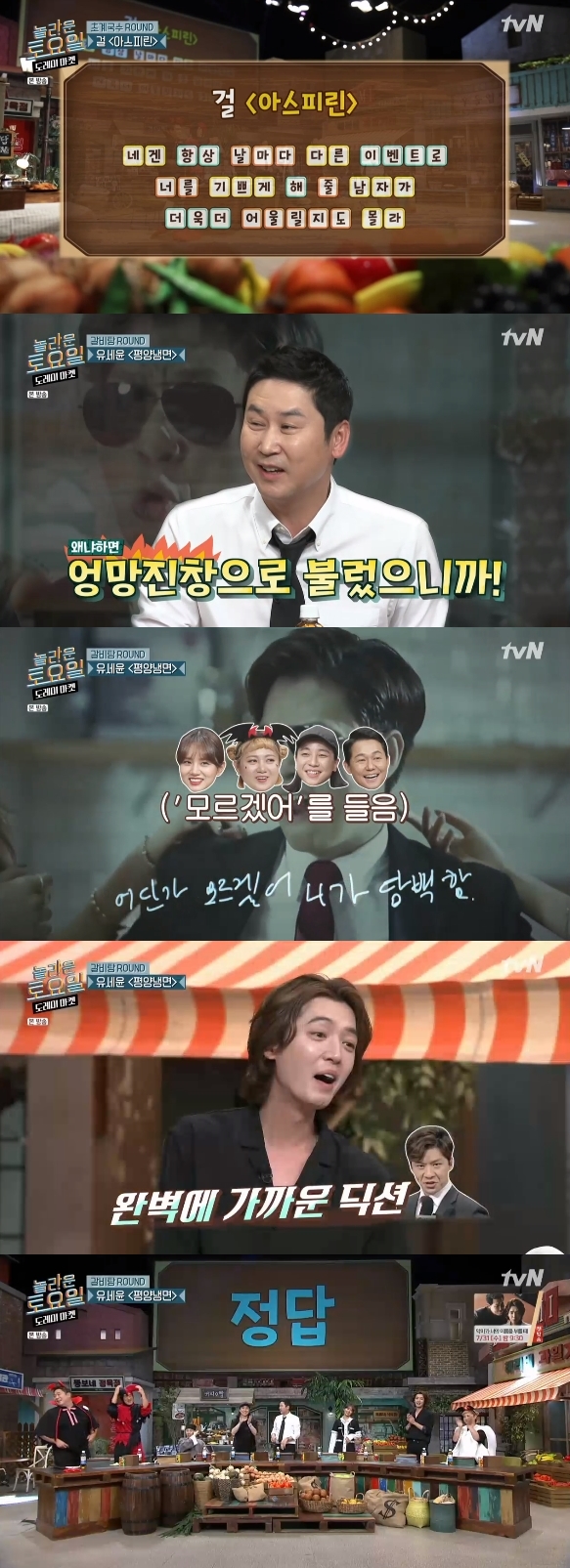 27일 오후 방송된 tvN 예능 프로그램 '놀라운 토요일 - 도레미 마켓'에서 밴드 걸의 '아스피린'과 유세윤의 '평양냉면' 가사가 문제로 출제됐다.