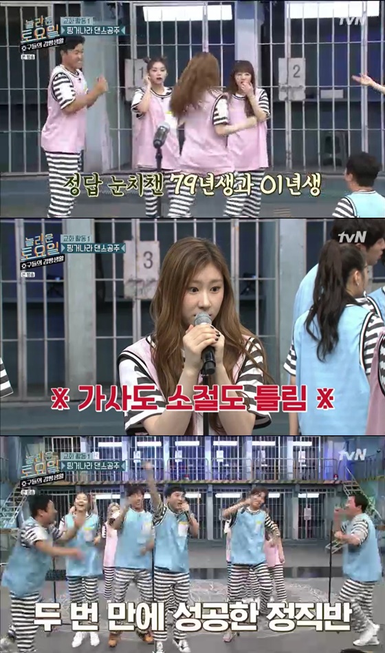 3일 오후 방송된 tvN 주말 예능프로그램 '놀라운 토요일, 호구들의 감빵생활'에서 걸그룹 ITZY 멤버들이 1라운드 게임 '핑거나라 댄스공주'에서 자신들이 태어나기 전 노래인 룰라의 '3!4!'를 한 소절도 넘기지 못했다.