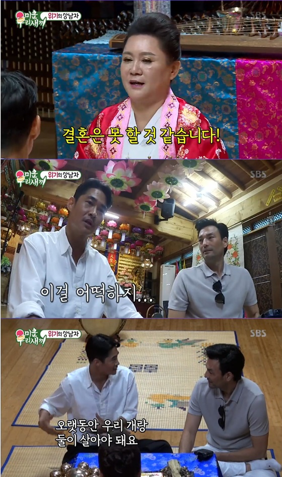 배정남은 "개와 살면 되지"라고 말했지만 미련을 버리지 못해 "좋은 짝을 만나면 또 운명이 바뀔 수 있냐"고 물었다. "그럴 수 있다"는 무속인의 말에 배정남은 안심했다.
