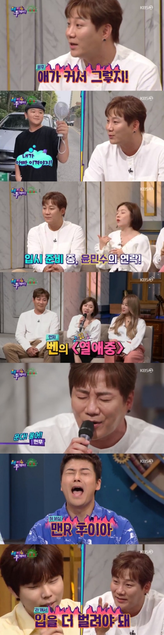 이에 윤민수의 변이 시작됐다. 윤민수는 "실제로 예쁘지 않은 사람에게는 그런 말도 못 한다"며 "그게 아니기 때문에 그 곡을 준거다"라고 말했다. 또한 윤민수는 벤의 노래 '열애 중'을 자신이 부르면 '오열 중' 혹은 '이혼 중'으로 들린다고 말해 폭소를 자아냈다.