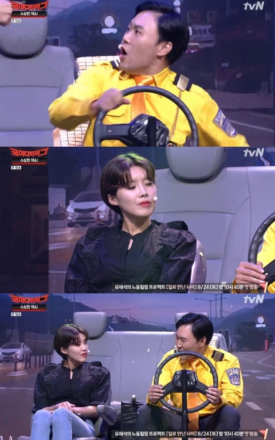 11일 오후 방송된 tvN 예능프로그램 '코미디 빅리그'의 코너 '수상한 택시'에서 오래전 헤어졌던 연인 장도연과 김용명이 만났다.