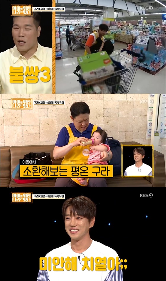 17일 오후 방송된 KBS 2TV 주말 예능프로그램 '아이를 위한 나라는 있다'에서 김구라와 황치열이 4형제 돌보기에 나섰다. 김구라는 막내를 집에서 돌보는 반면 황치열은 3형제를 데리고 마트에서 독박육아를 겪었다.