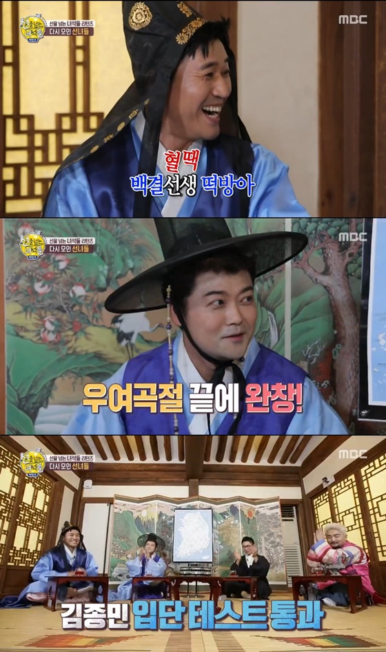 '선을 넘는 녀석들 리턴즈'에서 김종민이 '역사는 흐른다' 완창으로 선녀들 합류에 성공했다.