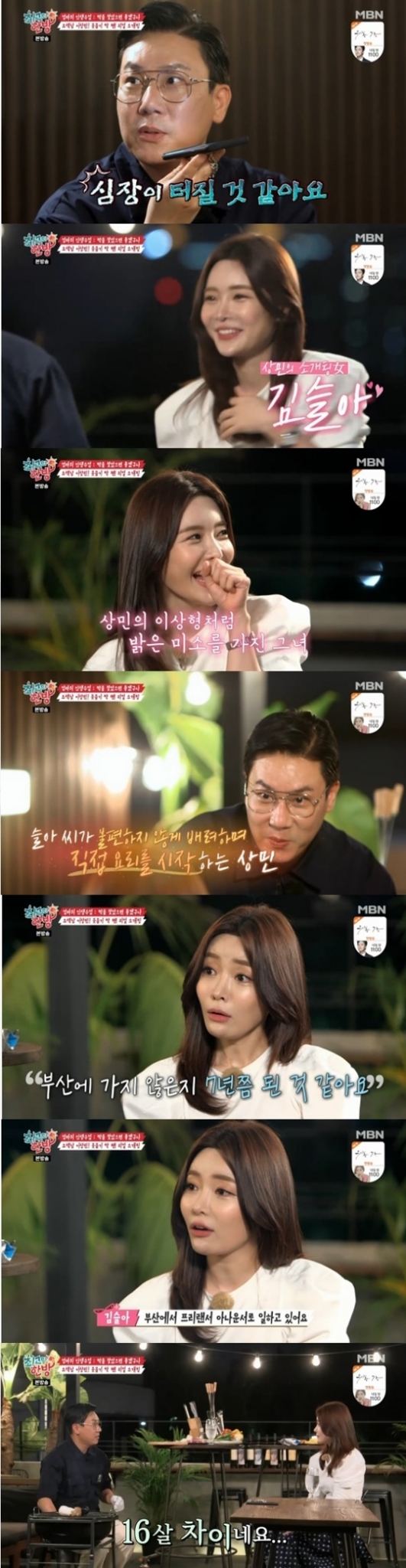 소개팅 상대인 김슬아는 16살 연하의 부산 출신 프리랜서 아나운서였다. 그녀를 본 이상민은 눈도 제대로 못 맞추는 등 평소답지 않은 어색한 태도를 취했다.