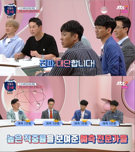 21일 오후 방송된 JTBC2 예능 프로그램 '오늘의 운세'는 '2:2 대학생 미팅특집'으로 꾸며져 '미팅 남녀의 전공 맞추기' 코너가 진행됐다.