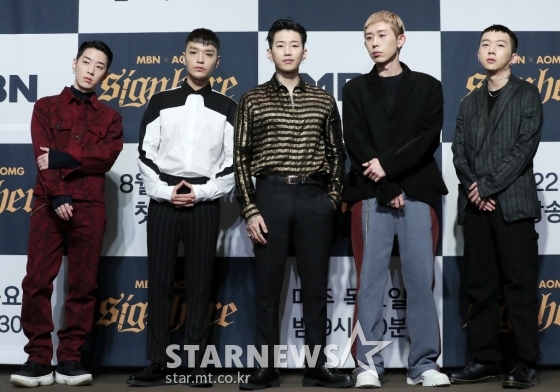 연예방송[★포토]'사인히어' 이끄는 AOMG!발행 : 2019.08.22 ・ 13:52김창현 기자가수 그레이, 사이먼도미닉, 박재범, 코드 쿤스트, 우원재가 22일 오후 서울 중구 장충동 그랜드앰배서더서울에서 열린 MBN 힙합 오디션 프로그램 'Signhere(사인히어)'에 참석해 포즈를 취하고 있다.'사인히어'는 무한한 음악적 재능으로 대한민국 힙합 신을 이끌어 갈 차세대 힙합 아티스트를 뽑는 신개념 프로젝트로 매주 목요일 방송된다.<저작권자 © 스타뉴스, 무단전재 및 재배포 금지>사인히어추천 기사김창현 기자기자홈좋아요 연예-방송의 인기 급상승 뉴스연예-방송의 최신 뉴스