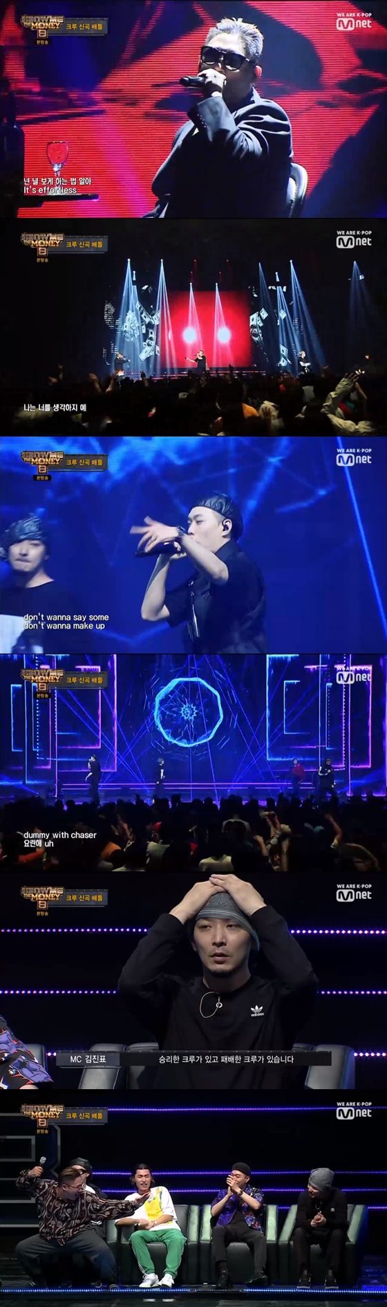 23일 오후 방송된 Mnet 예능 프로그램 '쇼미더머니 8(Show Me The Money 8)'에서는 크루의 신곡 베틀과 그에 대한 관객의 투표가 펼쳐졌다.