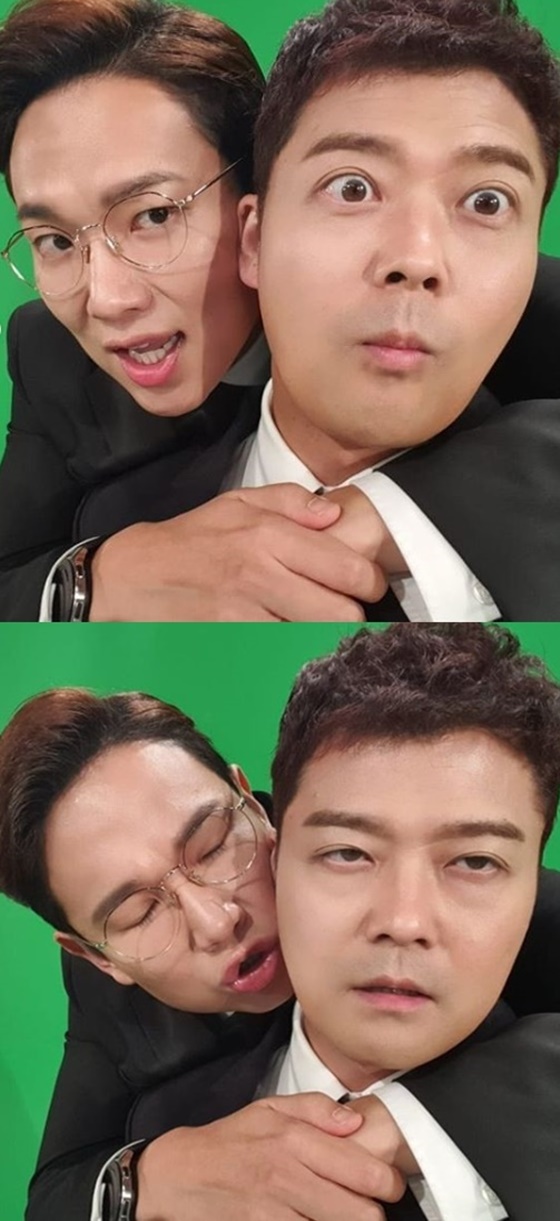 사진 속 장성규와 전현무는 정장을 입은 채 환한 미소를 짓고 있다. 또한 장성규의 폭풍 애교에 전현무는 지친 기색을 드러냈다.