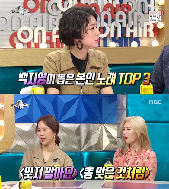 이날 방송에서 본인 곡 BEST3를 꼽아달라는 MC들의 요청에 백지영은 "부동의 1위는 '사랑 안 해'"라고 답했다.