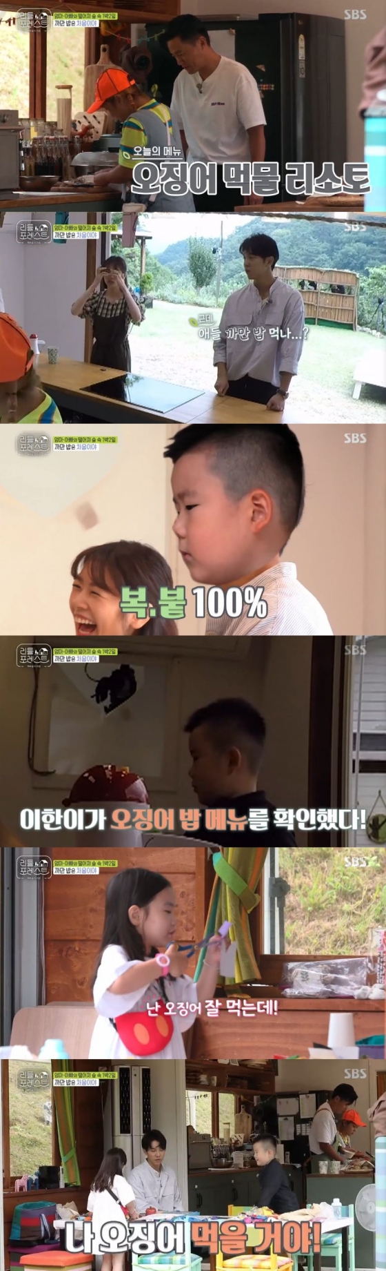 이에 이승기는 "저 까만 밥 안 먹는데요"라며 이한이 성대모사를 했다. 곧이어 이한이가 주방에 등장했고, 점심이 오징어 먹물 리소토라는 것을 확인한 이한이는 "나 오징어 싫어하는데"라며 표정을 굳혔다.
