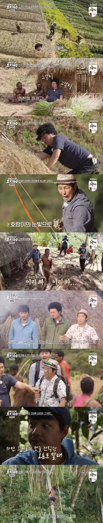 9일 오후 첫 방송한 MBN 크로스 컬처 프로젝트 '오지GO'에서는 김병만, 윤택, 김승수가 라니 족 부족민들과 함께 지내며 그들의 삶에 적응해나가는 모습이 그려졌다.